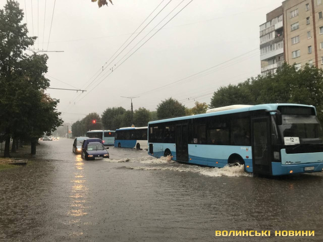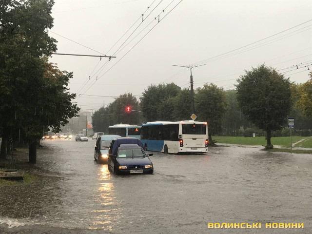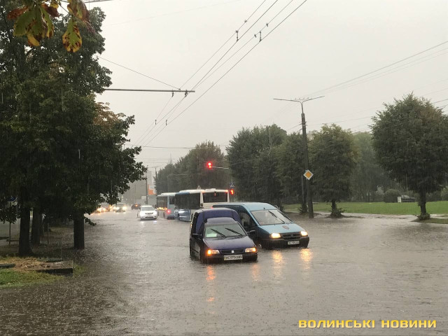 Знову велика вода в Луцьку: замість вулиць – річки, рух транспорту ускладнено