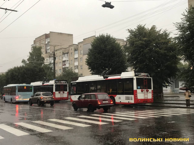 По обидва боки проїжджої частини стоять тролейбуси. Та й чимало водіїв автівок не ризикують продовжувати рух і розвертаються або також зупиняють транспортні засоби на узбіччях.