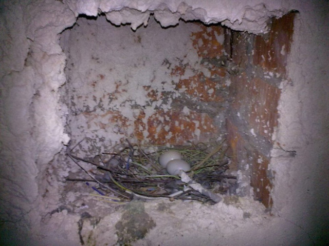 Чоловік зазначає, що вперше за його практики, трапилася така знахідка – ціле гніздо з цілими яйцями. Скоріш за все там поселилися голуби.