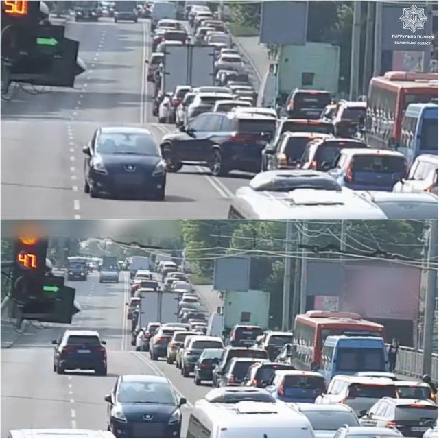 У Луцьку розшукали водія, який перетнув суцільну смугу, обминаючи затор