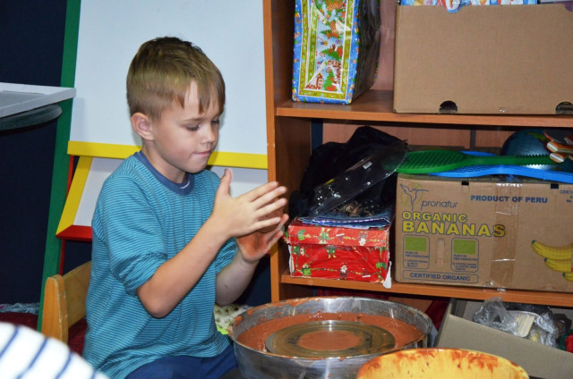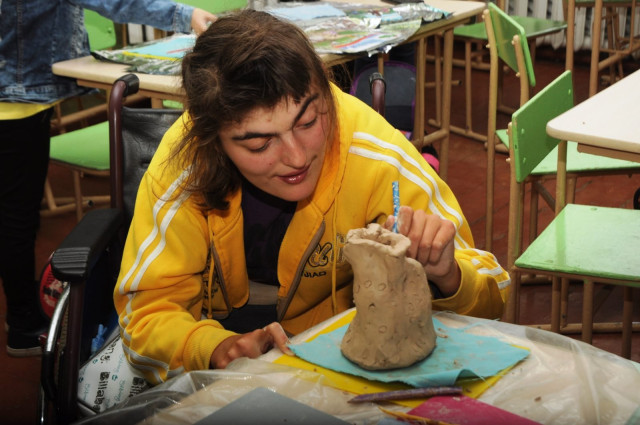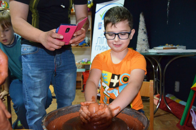 Подобається працювати з глиною і Тимофію Свіщеву. Хлопчик розфарбовує глиняного зайчика у жовтий колір, а потім разом з майстром робить горнятко на гончарному кругові. Мама Тимофія Катерина Сіщева каже: ГО «Даун синдром» налічує понад 80 сімей. Щодня для діток проводять різноманітні заняття. Малювання, ліплення, музика, танці – кожен може реалізувати себе в тому чи тому напрямку.