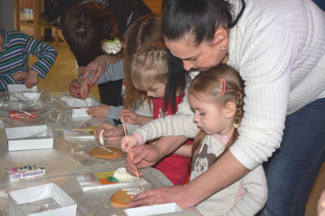 З 2 квітня до 2 травня в суботу та неділю за посередництвом Офісів розвитку кварталу на творчі уроки запрошують дітей із різних дитячих дошкільних закладів та організацій. На благодійній основі брати участь у заняттях можуть діти з особливими потребами, діти воїнів АТО та діти-сироти, яких підтримує Фонд.Майстер-класи розпочалися з розписування великоднього пряника. Майстриня Наталя Мартинюк сама випікає медово-імбирні заготовки, використовує лише натуральні інгредієнти і для печива, і для глазурі. Вона зайнялася таким оригінальним видом творчості під час декретної відпустки, аби потішити своє маля, але хобі стало улюбленою справою. На її думку, будь-яка творчість – це розвиток.«З дітками завжди дуже цікаво працювати. А ці прянички, як трішки підсохнуть, можна або з’їсти, або залишити. Вони можуть зберігатися до шести місяців, бо там дуже багато меду і прянощів», – зазначає Наталя Мартинюк.Крім майстер-класу, у галереї можна помилуватися роботами всіх 14 майстринь, що працюватимуть із дітками. Це та творчість, у якій найбільше тепла рук, любові, сонця, весни. Майстрині, які беруть участь у проекті, працюють в унікальних техніках декоративно-прикладного мистецтва: декупаж, скульптура, бісероплетіння, лялька-мотанка, текстильна іграшка, вишивка тощо.