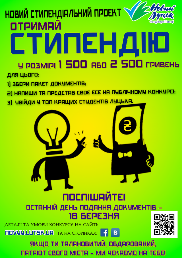 Триває реєстрація учасників та подання документів на отримання стипендії від Фонду Ігоря Палиці «Новий Луцьк».