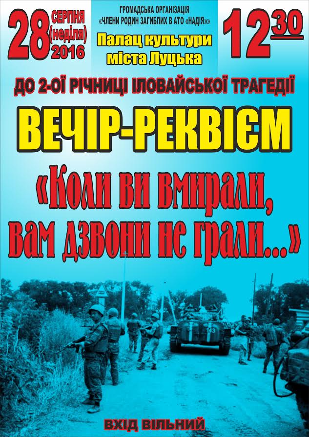 Потому, о 12:30 годині у Палаці культури міста Луцька відбудеться вечір-реквієм “Коли ви вмирали, вам дзвони не грали...”. Вхід вільний.