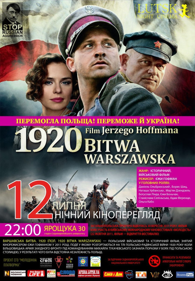 Цього разу лучанам покажуть кінострічку про Варшавську битву. 1920 рік - Польща звільнилася від "старшого брата", який теж визволяв "руssких" та будував "руssкий" світ. Стала незалежною державою!