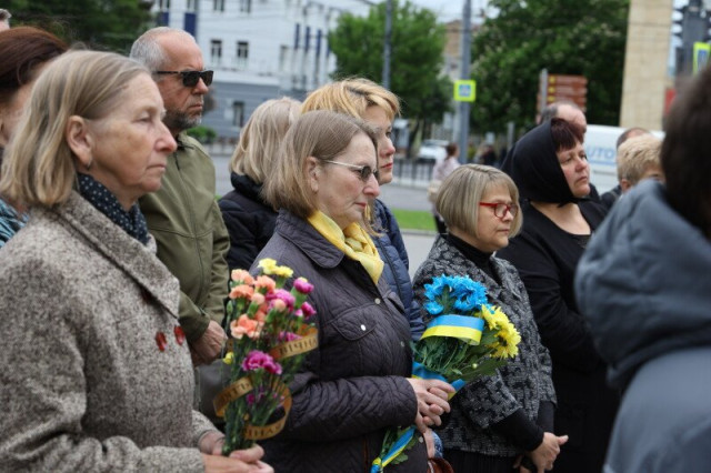Потому присутні поклали квіти до пам'ятного фотостенду.