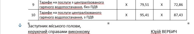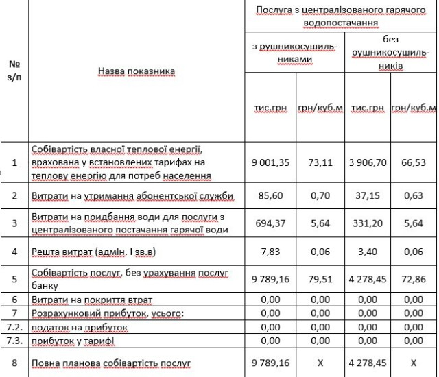 – для потреб населення – в розмірі 95,41 гривень за 1 м3 (з ПДВ) з рушнико-сушильниками та 87,43 грн за 1 м3 (з ПДВ) без рушникосушильників;