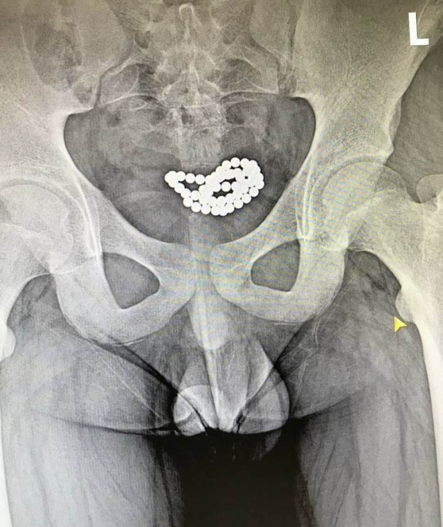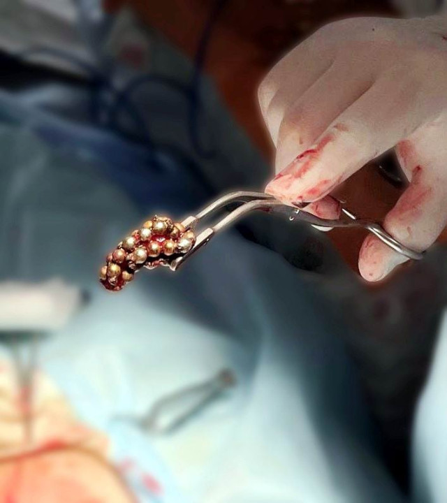 За останні три місяці в нашому закладі успішно було прооперовано два ідентичні випадки евакуації магнітних кульок з сечового міхура хлопчиків віком 10-15 років. В обох випадках було виконано цистотомію міні-лапаротомним доступом з подальшим вилученням 62 та 24 магнітних кульок.