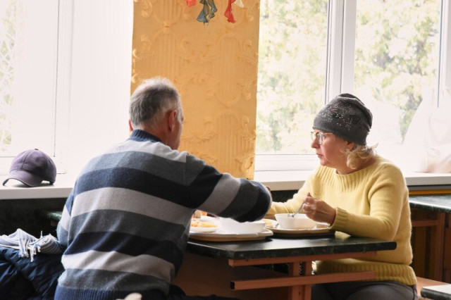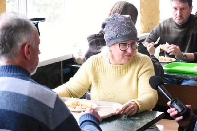 Серед постійних клієнтів тут пані Людмила. До війни жінка працювала фінансистом в Бучі під Києвом. Нині разом зі старенькою мамою вже понад місяць живуть в Луцьку. Вона розповідає, що перших два тижні було дуже важко психологічно, однак згодом вони адаптувалися та зареєструвалися вимушено переміщеними особами. Відтоді не пропустили жодного обіду.