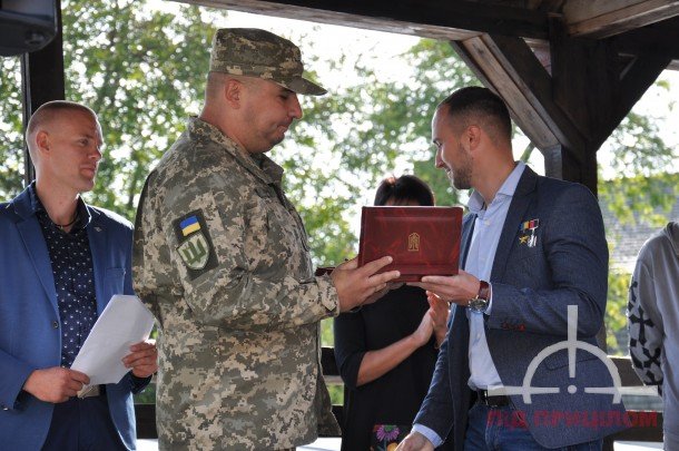 «Я не могла спокійно спостерігати за цим і почала їздити на схід волонтером, намагаючись допомогти. У той час Ярослав жив цим разом з нами. 7 вересня 2016 року до нас прийшла страшна новина, він отриманих травм в районі Донецького аеропорту помер мій чоловік. Після його загибелі Ярослав вирішив стати військовим, а мені нічого не лишалося як підтримати його», – розповіла жінка.«Для мене велика честь прийняти цю нагороду. Адже держава каже, що ти просто виконуєш свою роботу, а народ каже, що ти – герой», – зазначив Ярослав.Нагороду також отримав Олег Бончинський, друг Боня, доброволець, який проявив себе ще під час лютневих подій на київському Майдані.
