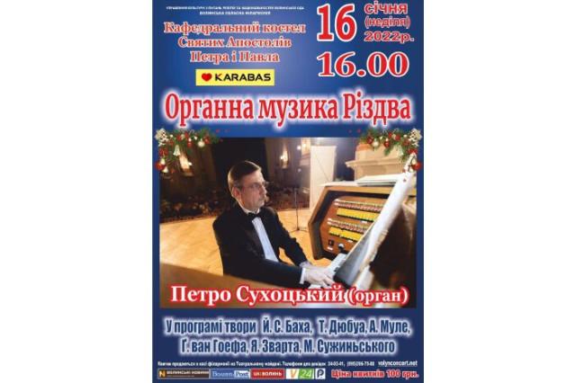 16 січня 2022 року у кафедральному костелі святих апостолів Петра і Павла відбудеться концерт «Органна музика Різдва».