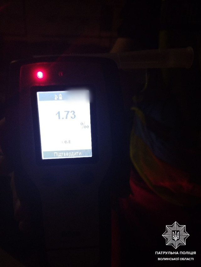 За кермом авто перебувала 30-річна жінка. Під час спілкування патрульні й справді виявили в неї ознаки алкогольного сп’яніння. Водійка погодилася пройти огляд на місці події за допомогою приладу Drager, який показав 1,73 проміле.