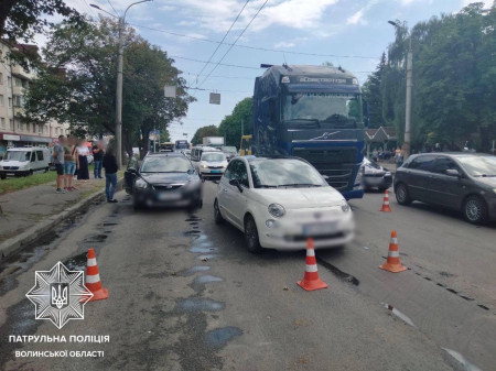 У Луцьку зіткнулися вантажівка і два легковики