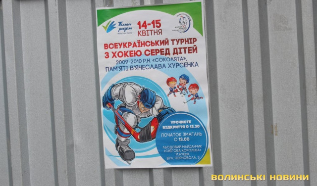 Відкриття Всеукраїнського турніру з хокею серед дітей 2009-2010 років народження «Соколята» імені В’ячеслава Хурсенка відбулося на льодовому майданчику «Снігова королева» 14 квітня.