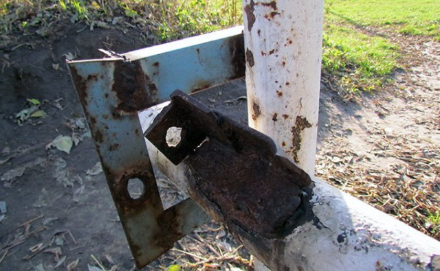 То важко назвати полем. Там перед воротами трави немає, болото. Забора немає. охорони немає.