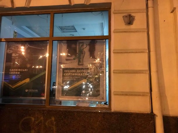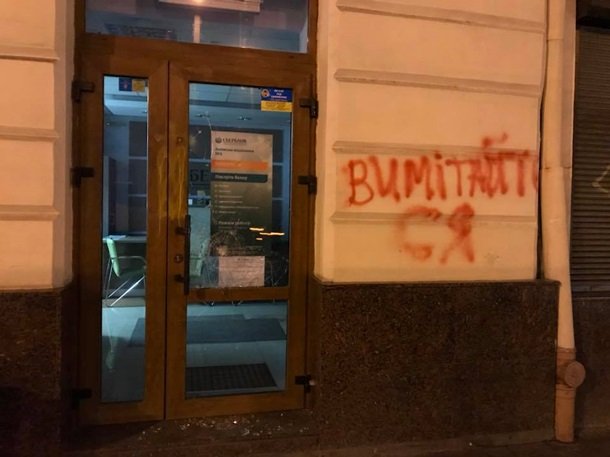 У Львові побили вікна та двері у Сбербанку Росії. Фото