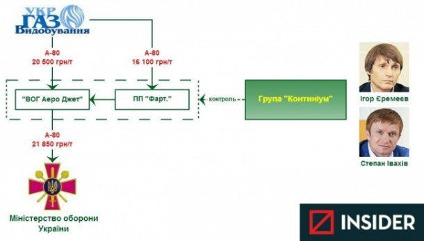«Фірма« ВОГ аеро джет »уклала угоду з Міноборони на постачання 17700 тонн бензину за ціною 21 840 гривень за тонну. Перед цим вона придбала невелику частину об'єму, який повинен бути поставлений армії, у державній «Укргазвидобування» за 20 500 гривень за тонну. Завдяки цьому ціна поставки Міноборони стала цілком обґрунтованою, а комерційна маржа - цілком прийнятною.