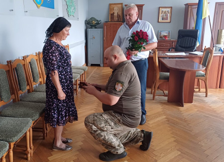 23 липня в приміщенні Маневицької селищної ради очільник громади Олександр Гаврилюк, начальник відділення мобілізаційної роботи – заступник начальника Першого відділу Камінь-Каширського районного територіального центру комплектації та соціальної підтримки, майор Юрій Мізюк вручили мамі Героя Надії Романівні державну нагороду і висловили шану та співчуття.