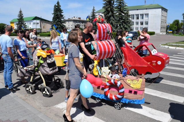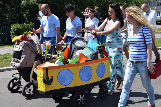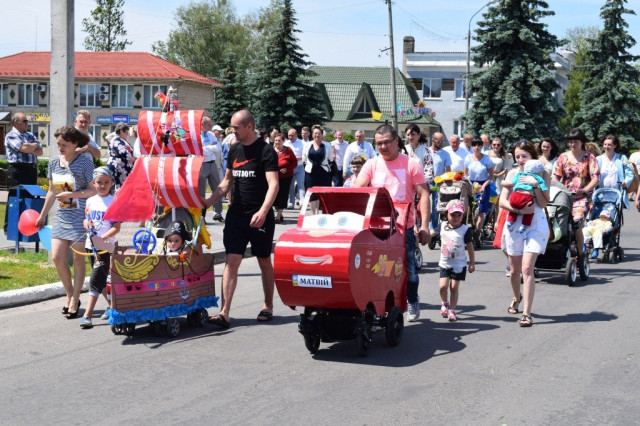 Розпочались урочистості із параду з дитячими візочками під духовий оркестр. Таку оригінальну акцію проводять вже вдруге. Батьки разом з малюками прикрашають візочки у різноманітній стилістиці і крокують аж до місцевого парку. Цього року дитячих «транспортів» було не надто багато, проте кожен вирізнявся цікавим оформленням. Візочки трансформували у машини, кораблі та квітучі галявина.
