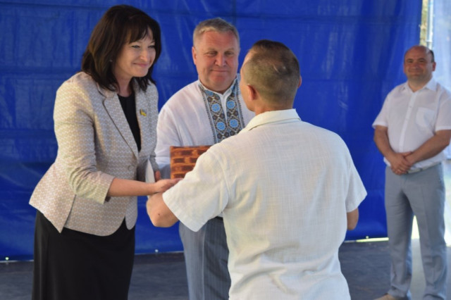 Парламентар не лише привітала маневичан із ювілейною датою, але й нагородила подяками від Верховної Ради України в галузі охорони здоров’я старшу медичну сестру поліклінічного відділення Маневицької центральної районної лікарні Валентину Оксенюк, в галузі промисловості – директора Маневицького торфозаводу філії ДП «Волиньторф» Володимира Щербачука та в галузі освіти –