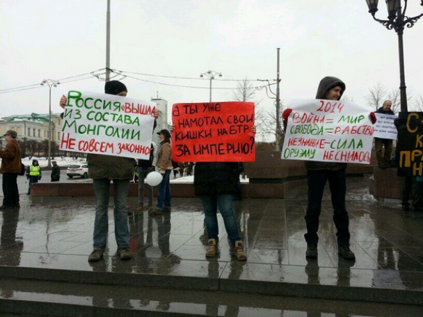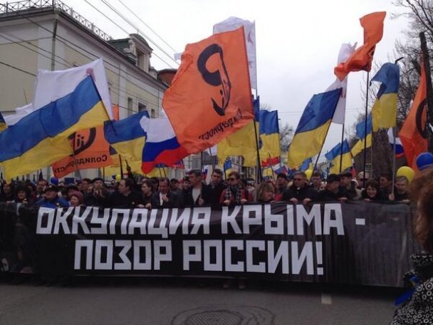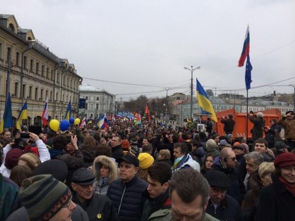 НА протязі останніх двох тижнів щоденно проходять мітинги в різних містах Росії ,як правило чисельністю 7-10 тис чол,під антибандерівськими гаслами, на пітримку референдуму в Криму та входженя його до складу Росії,проти= нелегитимної,бандитської=,як вони , чомусь, вважають ,київської влади Турчинова-Яценюка. Не став виключенням і сьогоднішній день. В Москві пройшли два великі альтернативні мітинги. Один-антипутінський ,так званий =Марш миру=,проти кримського референдуму, та приєднання його до Росйської Федерації,в якому взяло участь близько 6 тис чол .Інший-пропутінський,за кримський референдум та входження Криму до РФ.