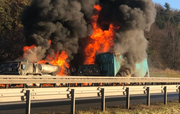 Внаслідок зіткнення загорілися два військові автомобілі – постраждали вісім людей, зокрема американські військові. Вони госпіталізовані з отруєнням димом та травмами.