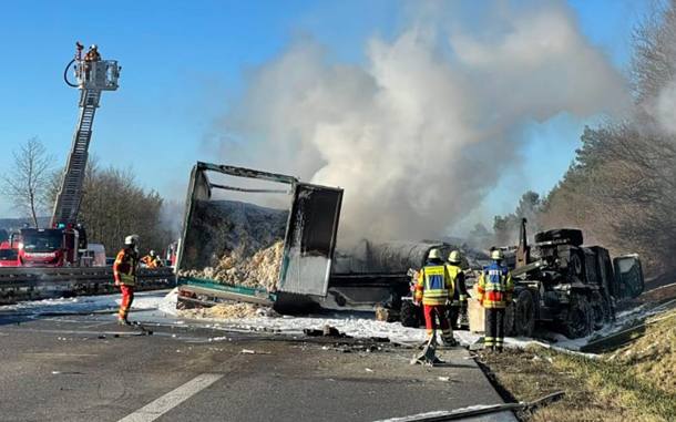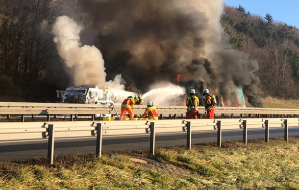 На час гасіння пожежі поліція повністю перекрила трасу А3. Автомобілі прямували в об’їзд.
