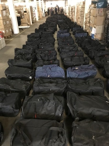 У документах було вказано, що в контейнері знаходяться соєві боби, але митники побачили лише чорні спортивні сумки. Вони виявили понад 4200 пакетів з наркотиками.