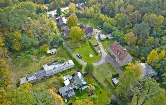На території поселення приблизно в 100 кілометрах від Берліна розташовано кілька житлових будинків, багато з яких порожні, а також гаражі та підсобні приміщення.