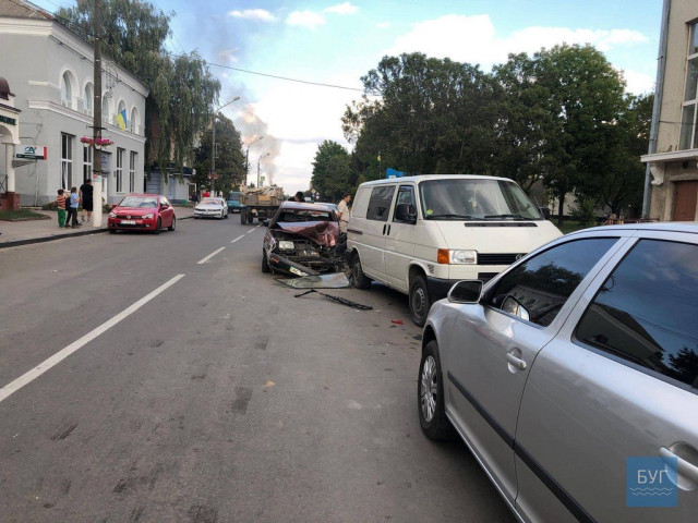 Як розповіли очевидці, легковик Фольксваген Джета в‘їхав у припаркований мікроавтобус, який зачепив ще «Шкоду».