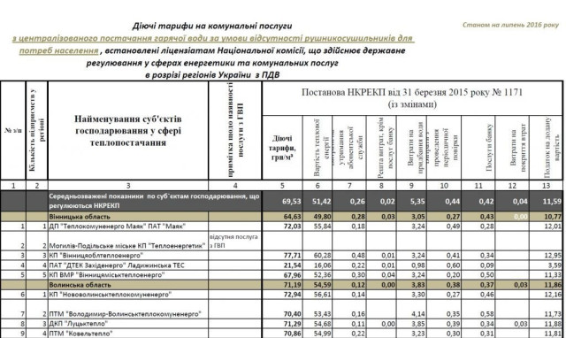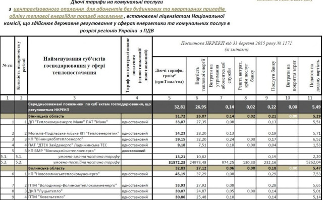Ціни на тарифи встановлює ліцензіат Національної комісії, що здійснює державне регулювання у сферах енергетики та комунальних послуг в розрізі регіонів України з ПДВ. Але рішення щодо прийняття цін на тарифи у нашому місті приймає Нововолинський виконком.