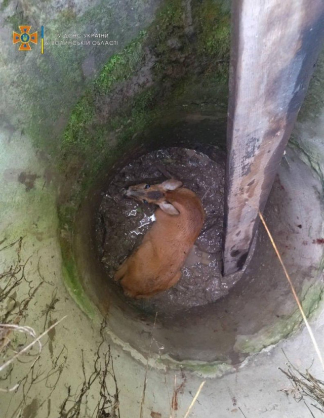 У Нововолинську рятувальники витягли косулю, яка впала в колодязь