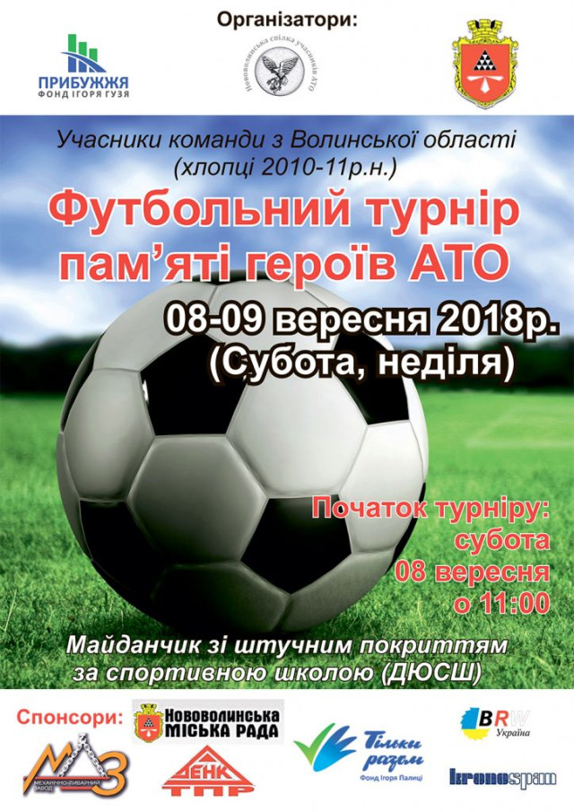 8 та 9 вересня у Нововолинську на спортивному майданчику біля ДЮСШ відбудеться футбольний турнір пам’яті Героїв АТО.