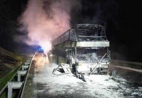 На півдні Польщі недалеко від міста Альверня повністю згорів автобус Київ-Прага, 70 громадян України евакуювали.