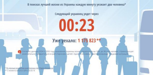 З кінця березня 2018 року з України виїхали 1 175 823 громадян.Зокрема, щохвилини країну залишають дві людини в пошуках кращого життя.