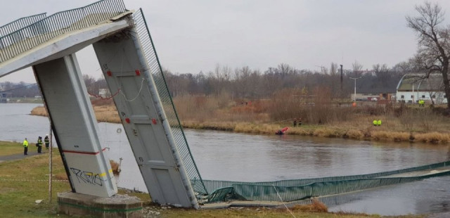 При падінні мосту, який використовували виключно пішоходи та велосипедисти, постраждали четверо осіб, двоє з них - серйозно. Ніхто з них, проте, не впав у річку, повідомило агентство ЧТК.