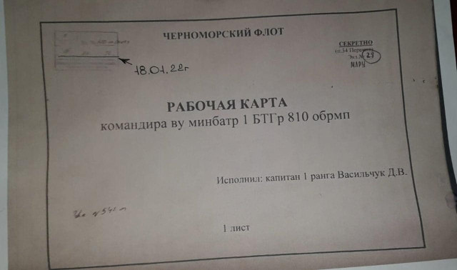 Як зазначили, до їх розпорядження потрапили планувальні документи одного з підрозділів батальйонної тактичної групи 810 окремої бригади морської піхоти Чорноморського флоту Російської Федерації.