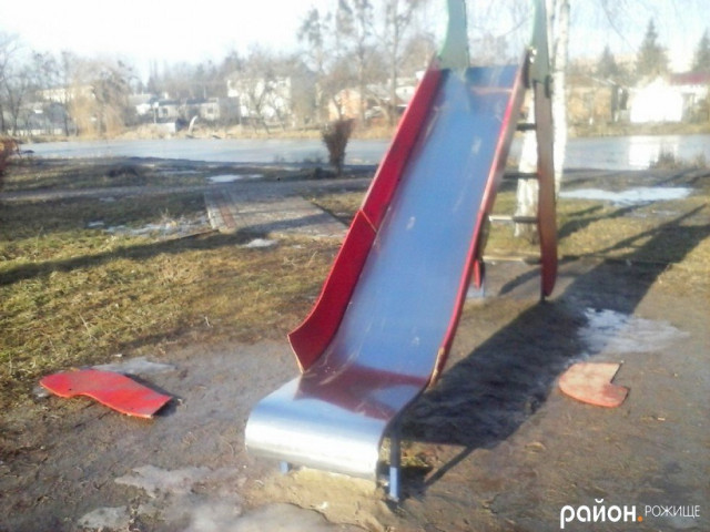 Дитячу гірку та гойдалку в центральному парку міста Рожище вандали пошкодили вдруге.