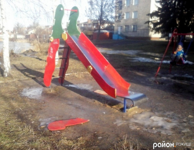 Лише восени працівники КП "Дільниця благоустрою" відремонтували місце дитячих забав і радощів, а сьогодні доводиться спостерігати прикрий факт, - інформує Район.Рожище.