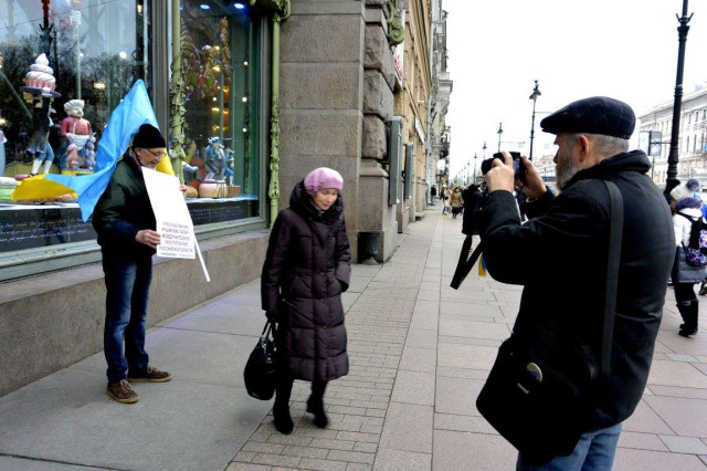 У Санкт-Петербурзі люди вийшли на пікет з українськими прапорами