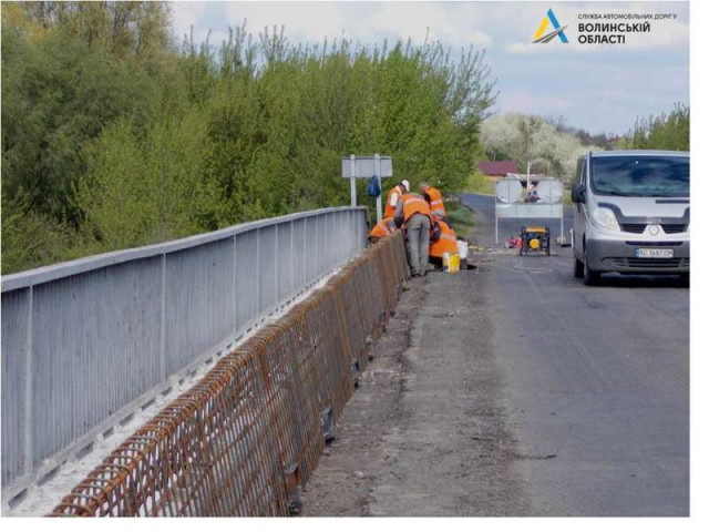 На мосту через річку Стир у селі Княгининок, що розташований на км 142+420 автодороги М-19 Доманово (на м.Брест) – Ковель – Чернівці – Тереблече (на м.Бухарест), тривають ремонтні роботи.