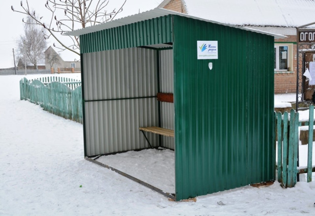 УКРОП Оксана Дмитрук, зупинка була облаштована 20 грудня. Ідея її встановлення виникла в директора місцевої школи Руслана Лісецького, який уже має успішний досвід у написанні проектів та співпраці з Фондом Ігоря Палиці “Тільки разом”.