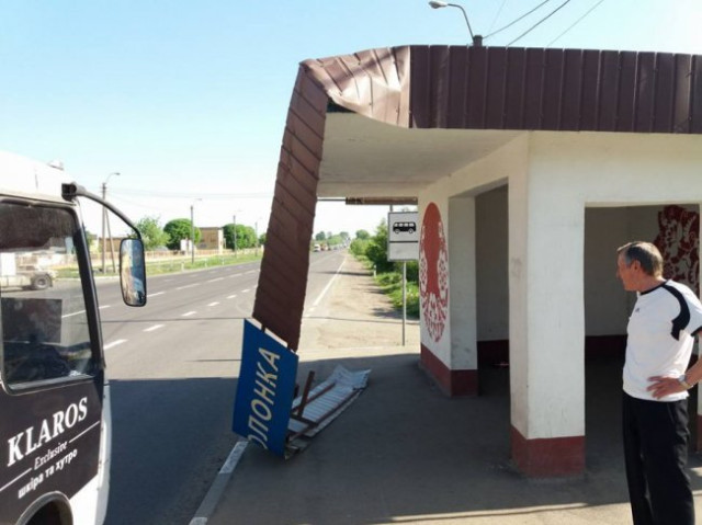 У селі під Луцьком впала вивіска зупинки. Фотофакт