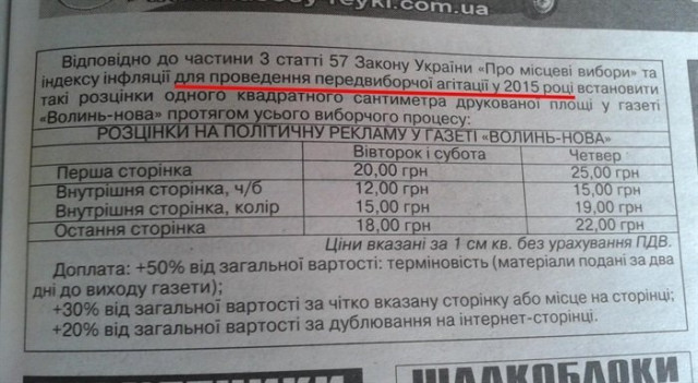 У міському бюджеті Ковеля на 2016 рік під «розкрутку» позитивного іміджу владної команди мера Олега Кіндера передбачили 200 тисяч гривень – на періодичні видання (газети і журнали) та 80 тисяч гривень – на телебачення і радіомовлення. Загалом, замовлена високопосадовцями так звана інформаційна «джинса» обійдеться міській громаді в майже третину мільйона гривень, що є рекордною сумою, - інформує Kowel.com.ua.