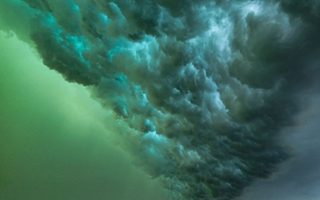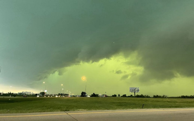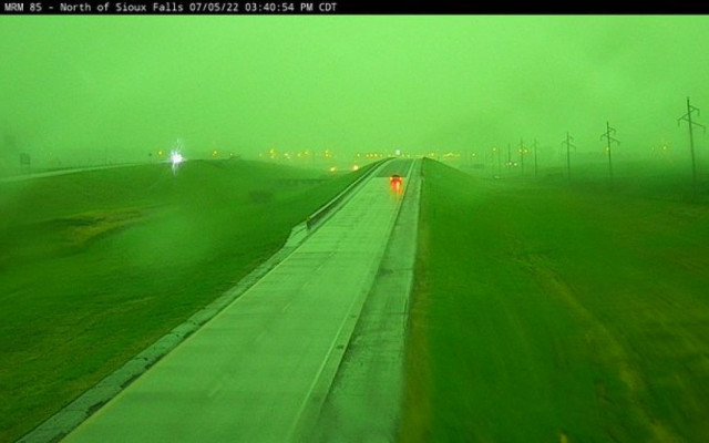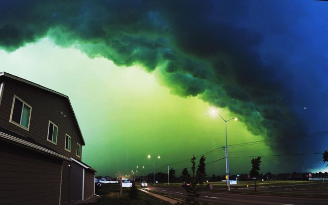Захмарене небо набуло незвичайного кольору під час вечірньої грози з блискавками в американському штаті Південна Дакота. Мешканці були вражені тим, як під час сильної грози надвечірнє небо, яке спершу мало звичайний блакитний відтінок раптово змінило свій колір на зелений.