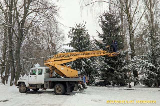 У центральному парку Луцька прикрашають ялинки. Фото