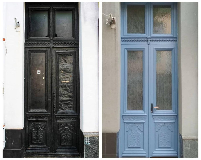 Відомі інстаграмні двері з вулиці Словацького залишили зеленими, а от двері з вулиці Кривий Вал перефарбували з коричневого в бордовий колір, натомість двері з Лесі Українки зробили блакитними (раніше вони були пофарбовані в чорний колір).