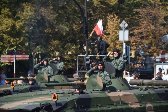 У параді взяли участь близько 1600 солдатів, сотні одиниць бойової техніки, у тому числі літаки і вертольоти. У небі над Варшавою з'явилися літаки Mіг-29 і F-16, проїхали танки Леопард-2, PT- 91, броньовані автомобілі "Росомаха" і низка інших транспортних засобів. Про це по повідомляє Українська служба Польського радіо.