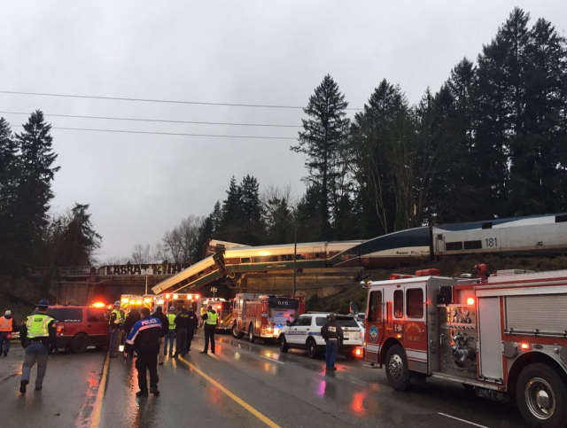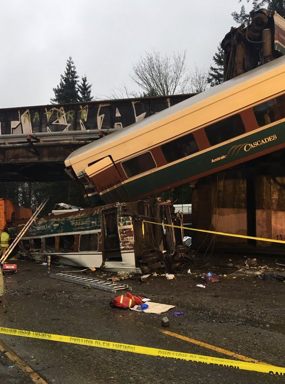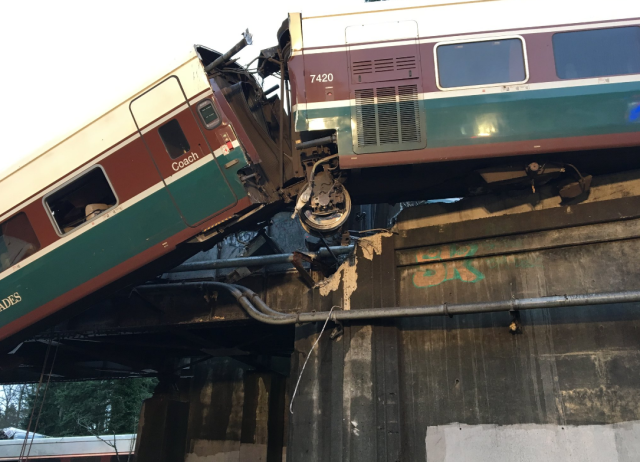 В американському штаті Вашингтон, два вагона потяга залізничної компанії Amtrak впали на жваву магістраль.