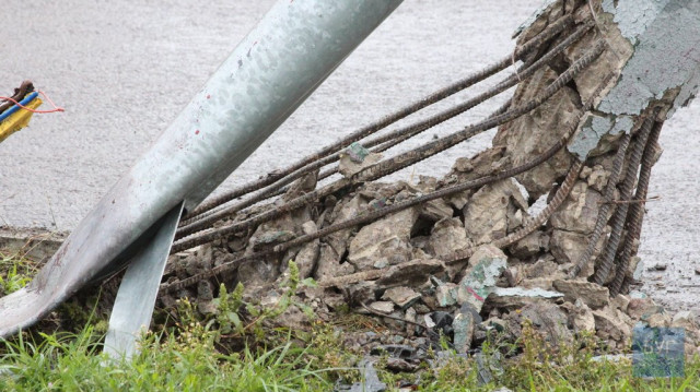Близько 9:30 дві опори – металева й бетонна- ще висіли «вирвані» з землі на електрокабелях.